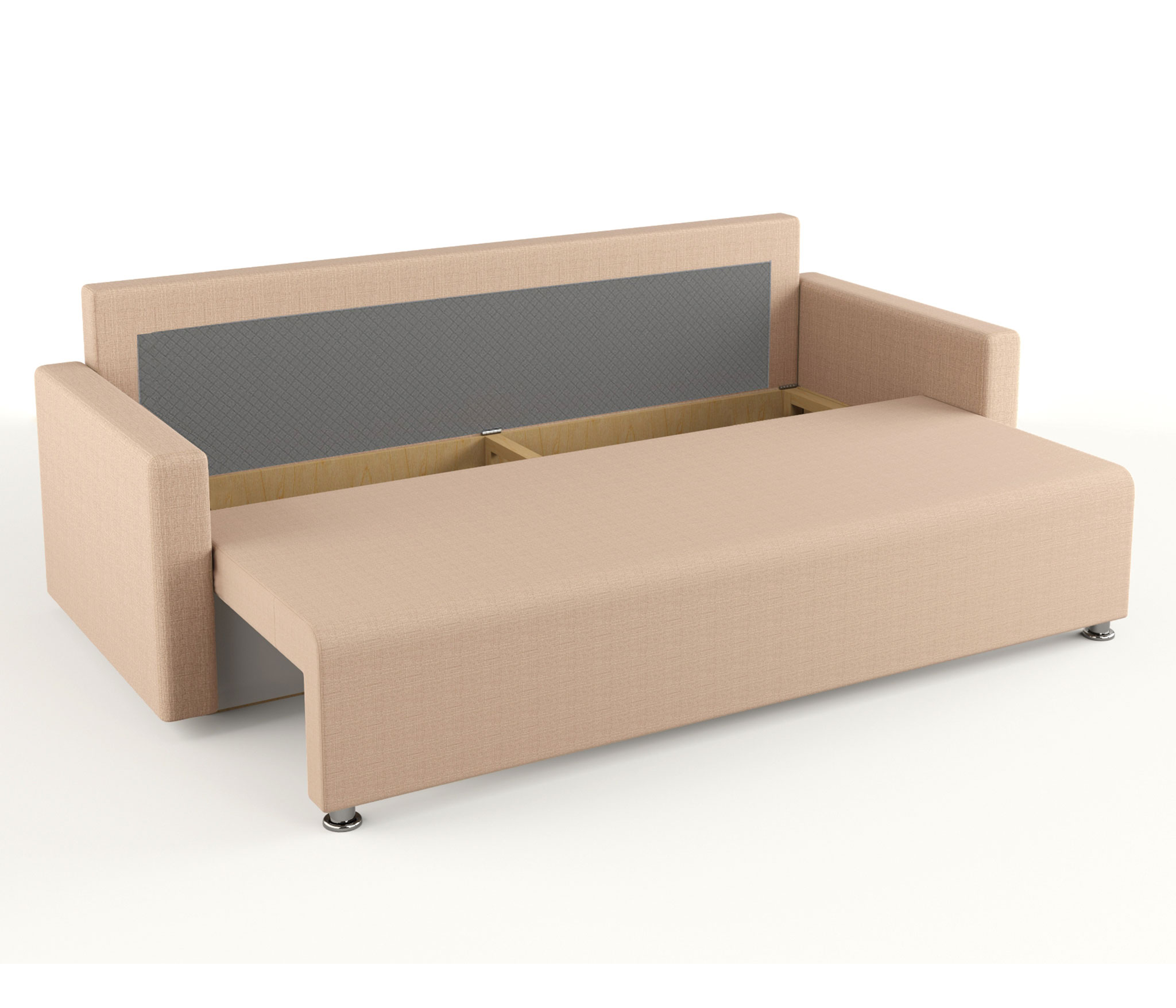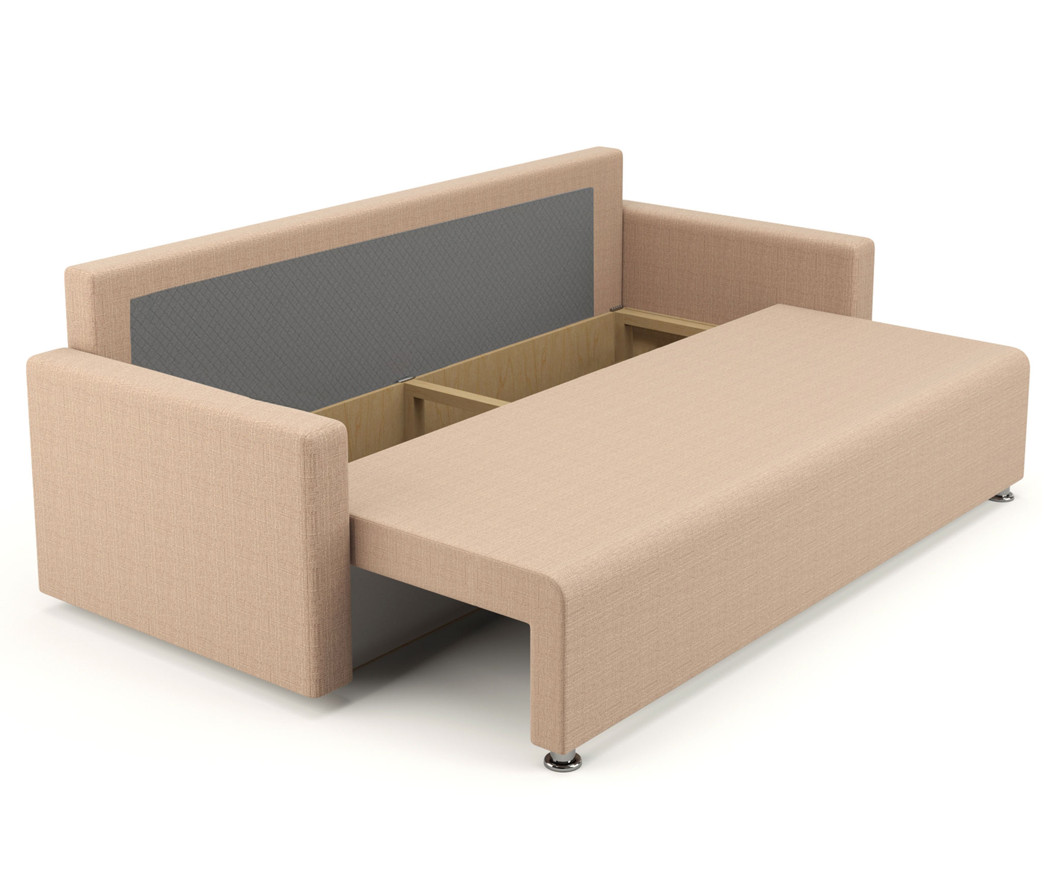 Добротный и простой диван, приятный цвет, пухлые подушки. Нескользкая обивка. Даже не разбирая, большое спальное место для одного человека. Покупкой довольны.
